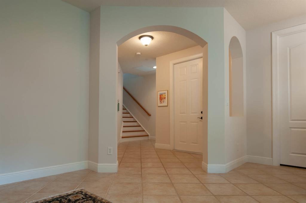 Mediterranean inspired three-story Aventino model. Abundance of natural light and beautiful architectural detail. Premium interior location within community. First floor bonus room (office, art or exercise studio, media or guest room) with half bath. Private covered lanai and walled/fenced yard. Second floor features open gourmet kitchen, breakfast area and family room with archways leading to dining room/living room and powder room. Third floor master suite with coffered ceiling and large walk-in closet, 6' Jacuzzi tub, separate shower, vanities and water closet. In addition, two bedrooms, full bath, linen closet and laundry room. ADT Security monitoring, impact resistant windows and doors. Rinnai tankless hot water heater, double convection oven, stove and dryer (all gas).