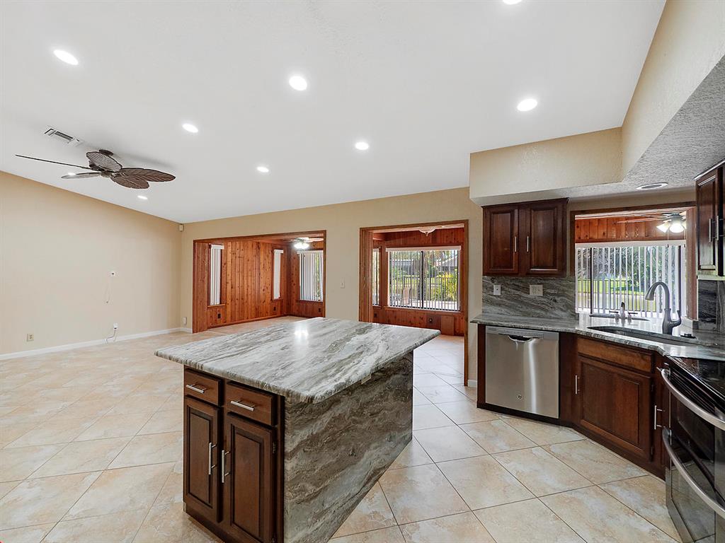 WELCOME YOUR GUESTS THROUGH YOUR DOUBLE DOOR ENTRY, TO A LARGE FOYER WHERE THE WATER VIEWS START AND CONTINUE IN EVERY ROOM BUT BED #3. TILE FLOORS THROUGHOUT TO AN OPEN FLORIDA ROOM OPENS THE HOUSE TO PLENTY OF SUNLIGHT STARTING WITH A SUN RISE OVER YOUR LAKE VIEWS. NEWER A/C WORKS EFFICIENTLY TO KEEP YOUR NEW HOME COOL ON THE HOTTEST SUMMER DAYS.SPLIT FLOOR PLAN AND AN UPDATED MASTER BATH AND NEWER GRANITE KITCHEN COUNTERTOPS. FENCED POOL ON THE LAKE. 2010 ROOF. GOOGLE ESTIMATES THE DISTANCE FROM THIS PROPERTY TO 441 IS 4/10 OF A MILE.