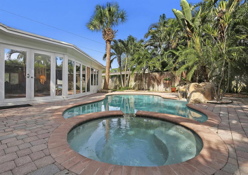 Move-in ready. P.G.T. impact windows and doors, one year new roof with double tie downs on all trusses. Power up anytime with direct home generator hook up. 80 gallon energy efficient hot water heater and updated 200 amp electrical panel. Totally renovated home includes spacious kitchen w/granite counters and stainless appliances. Office/den could be used as a guest bedroom. Enter your private backyard oasis to take a dip in your salt chlorinated pool with heater. Relax and enjoy the soothing sound of the waterfall as you unwind in the spa w/ 2 hsp motor providing powerful jets. Rinse off under the outdoor shower before retiring to one of two large living spaces or tinker at your work bench in the 2+car garage w/storage.