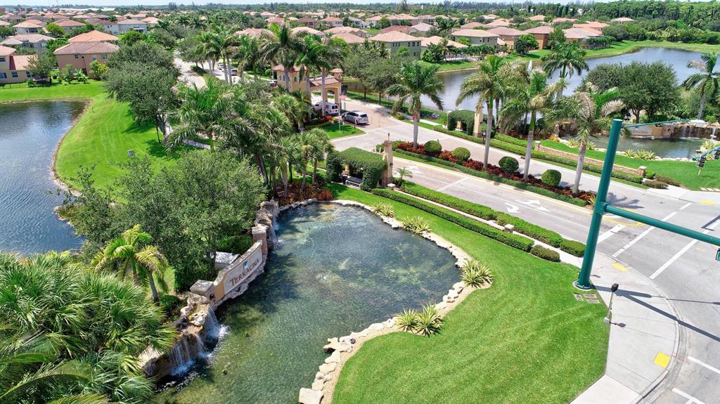 Exceptional layout. This home is larger than it appears. ONE BEDROOM & FULL BATH DOWNSTAIRS in addition to a private den by the kitchen. Upstairs has 4 bedrooms and a LOFT. It is a Lakefront (charming views, no rear neighbors) with room for a pool. HOA fees includes complete LAWN care, manned gates, resort pool, splash pool and tot-lot for kids, tennis court, basketball court, lakeside barbeque/picnic pavilion and a fitness center. Terrainca is centrally located and within 15 minutes to the following: I95, FL TPKE, Wellington Green Mall, PBI Airport, the Beach, City Place, Clematis, Okeeheelee Park (300 acres, water skiing, BMX biking, kayaking, tennis, soccer, baseball, picnic pavilions, miles of walking trails, golf course & much more). Call anytime to view.