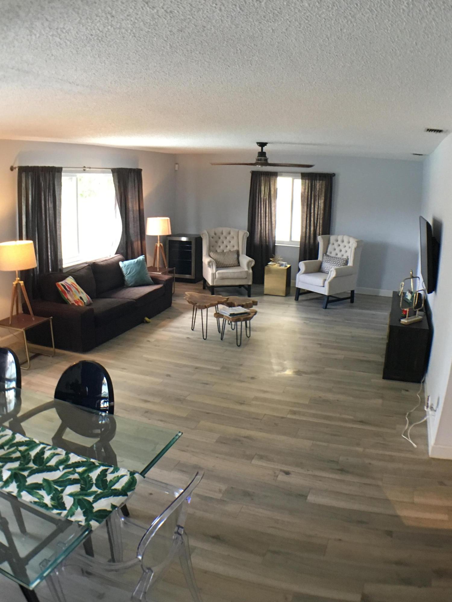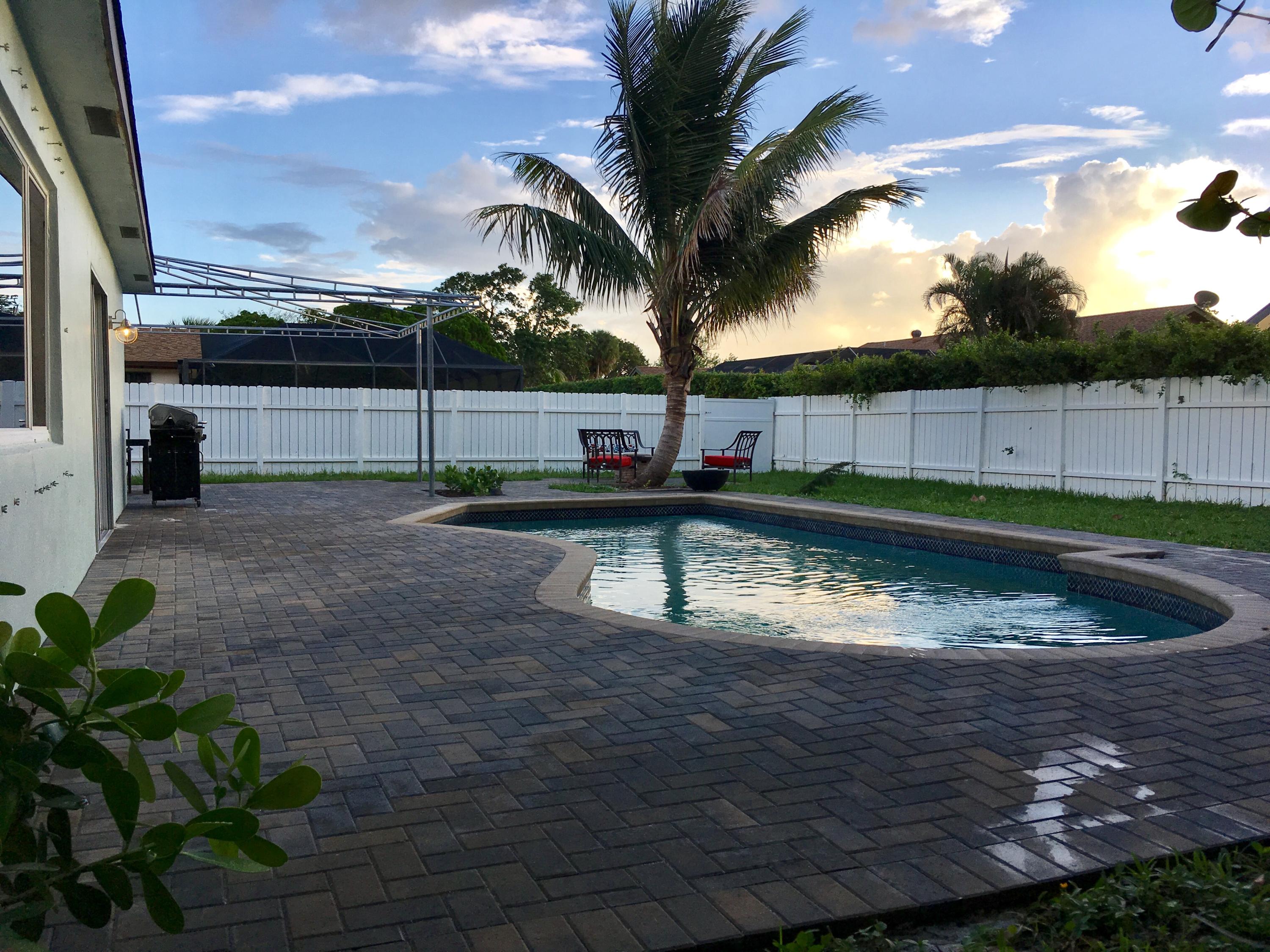 Beautifully renovated Three bedroom plus office/ work room, 2 bath one story home. New Flooring throughout with upgraded kitchen, New bathrooms, Huge Private backyard with patio and pool. Great for entertaining. New tile and brick pavers. Circular Driveway and one car garage opens from the rear. Walking distance to Community park with pool, tot lot and best schools. South County Park nearby with golf, tennis, sports, water park.Kitchen6'' x 36'' wood look porcelain tileCountertop - opustone - cenizo marble/ GE appliancesGuest bathWhite Carrera Marble Floor & shower wallsCountertop - opustone - barsant graniteMaster bathValentino grey Marble floor & shower wallsPebble marble mosaic shower floorAzul glass tile wallWhite carrera marble sinkBack Patio Brick pa