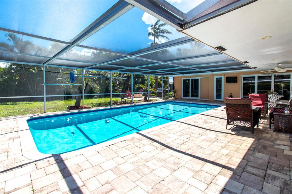Beautiful 4 bedroom 2 bath pool home located in Boca Square on oversized lot. This house offers a 2 car garage along w/an oversized screened in pool. 24'' porcelain floor tile thru out living area w/wood flooring in all bedrooms. Master suite has private renovated bathroom w/large walk in closet that includes a closet system. Updated kitchen with wood cabinets & granite counter tops. House interior is freshly painted w/many upgrades. This home offers all hurricane impact windows & sliding glass pocket doors for entertainment. Fenced backyard offers a beautifully landscaped oasis. The roof was replaced in 2004, A/C relaced 2014,hot water heater replaced 2017 and pool remarcited in 2016 along with coping & pavers leading out to outside fire pit area. Garage door is impact rated w/auto opener