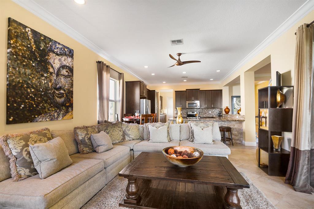This gorgeous St. Tropez model in the highly regarded Portosol community consists of 5 generously sized bedrooms and 4 full bathrooms. As you enter you are invited in with extended lake views, crown molding, coffered ceilings, and much more. The gourmet eat-in kitchen features granite counters, glass backsplash, stainless steel appliances and offers an open concept feel that flows throughout the home. This home is ideal for family entertainment and includes a water purification system. The formal dining room provides an ideal setting for entertaining with an amazing butler's pantry. Your family will enjoy relaxing panoramic lake views from your extended covered patio great for outside dinners or just enjoying the sunset. Portosol offers resort-style living with great amenities such as: