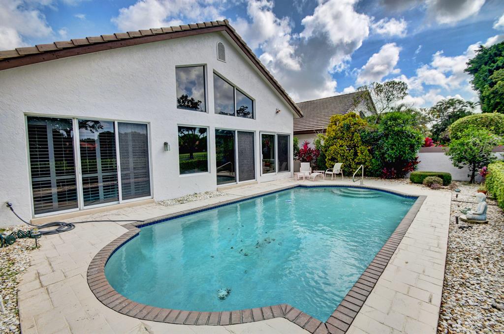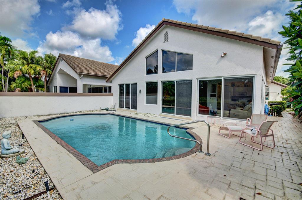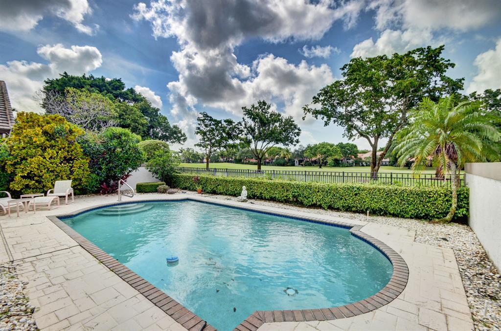 Beautifully appointed 3 bedroom (or 2 bed with den) 2 bath pool home situated on a golf view lot with expansive views! Let the outdoors in while enjoying all that has been remodeled on this home. High quality laminate and ceramic tile flooring, newer roof (5 yrs), new master bath and granite kitchen. A must see. Expanded cable & internet package is with the HOA payment. An additional application fee of $200. to Broken Sound Master Association. Many numerous activities available with the club. https://www.brokensoundclub.org/ Mandatory Broken Sound 1 time non refundable membership due at time of closing to the club of $70000. & $2500. to Broken Sound Master Association.