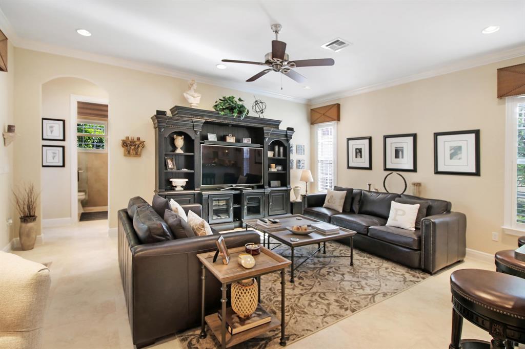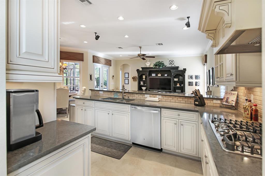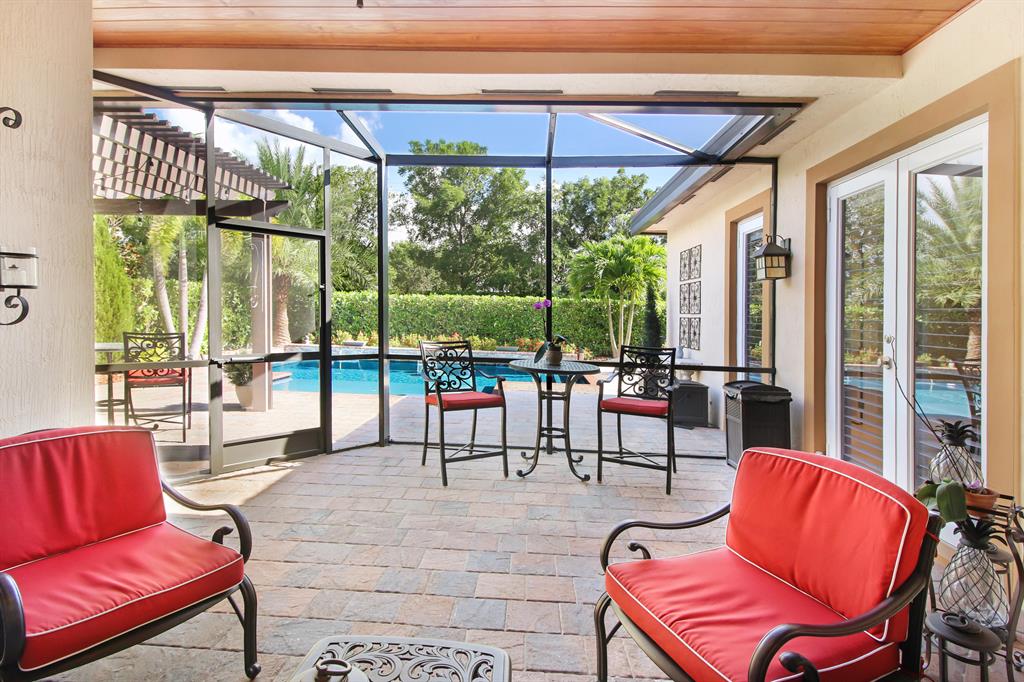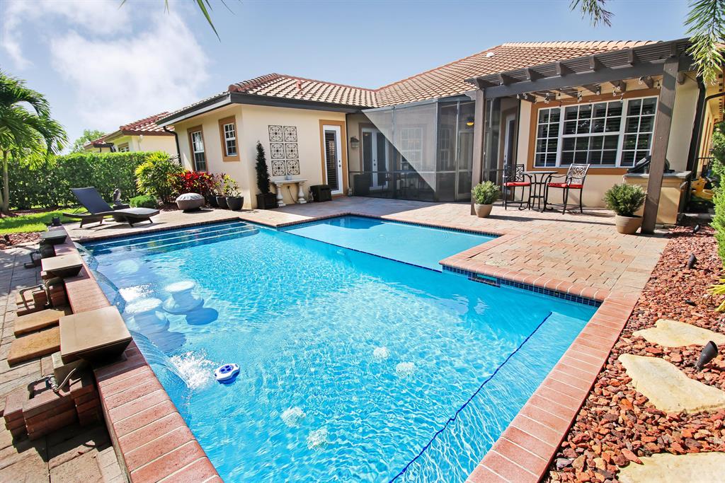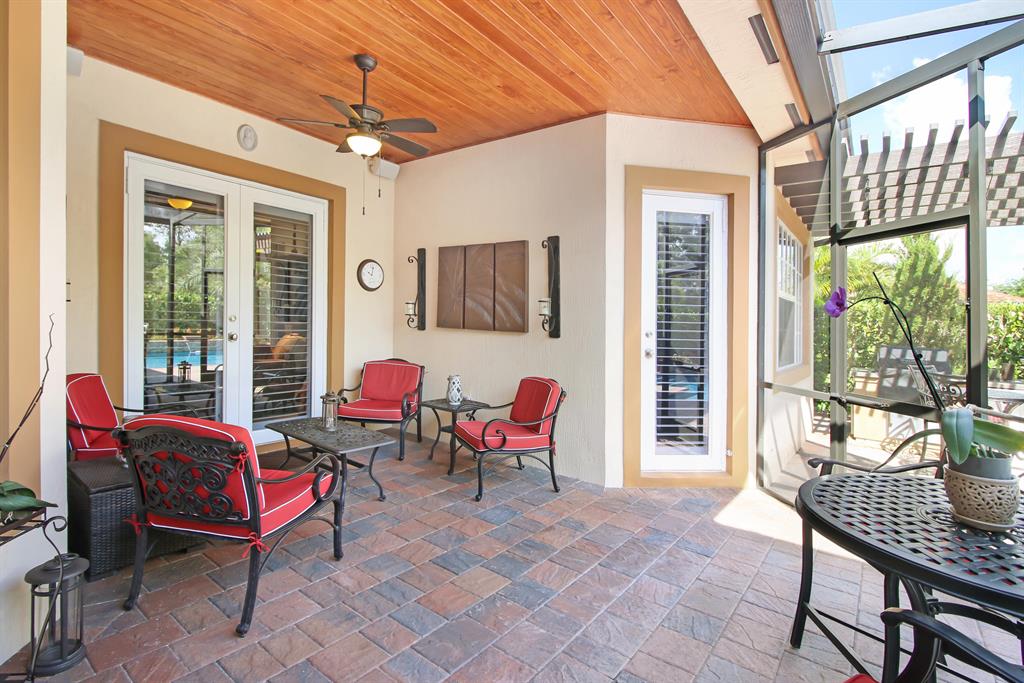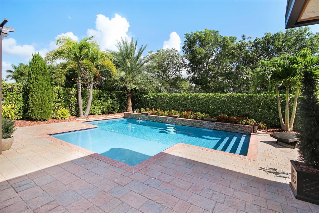 SHOWS LIKE A MODEL! This 4 BR, 3 BA, 3 cg home has been fully upgraded with the finest details! Featuring triple split plan, crown molding in living areas & master BR, Plantation shutters on all windows (all are hurricane impact), upgraded 42'' cabinets in gourmet kitchen w/GE Profile appliances including Advantium convection double wall oven plus touchless faucet, new quartz counters & sinks in kitchen, baths and laundry rm, porcelain 20x20 tile living area, hardwood floors in all BR's, custom closet systems, remodeled laundry rm, master bath w/marble floors & shower, ceiling fans throughout, wired for surround sound, screened lanai w/wood beam ceiling, builtin outdoor kitchen w/pergola, custom pool w/tanning shelf, 3 water features & fire feature + so much more! This home is a MUST SEE!!