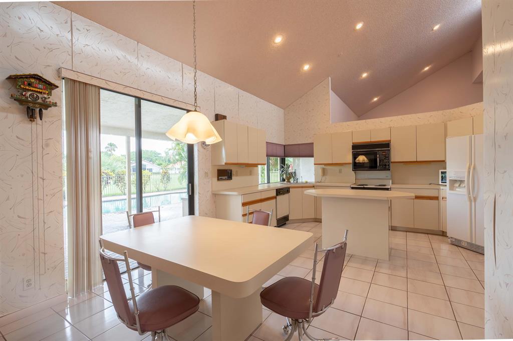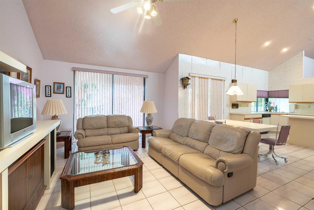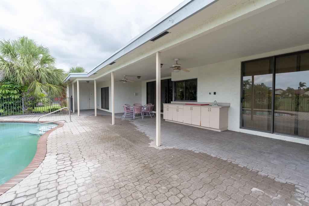 This custom home sits on the 11th hole of the Lakes Golf Course at Boca Woods with a spectacular southern view. It features the desirable split bedroom design with the second and third bedrooms on the east side with a double sink bath and the luxurious master suite on the west. A large walk in closet complements the master bedroom with both a walk in shower and large bath tub.The large patio has a free form pool and an extended roof with an outdoor entertaining area plus a cabana bath with shower. Boca Woods is known for its exceptional club atmosphere with 645 homes. It features two fabulous golf courses, tennis and pickle ball courts and a lively community of neighbors. The club has frequent dinner dances with a wedding like experience and a large dancing floor.
