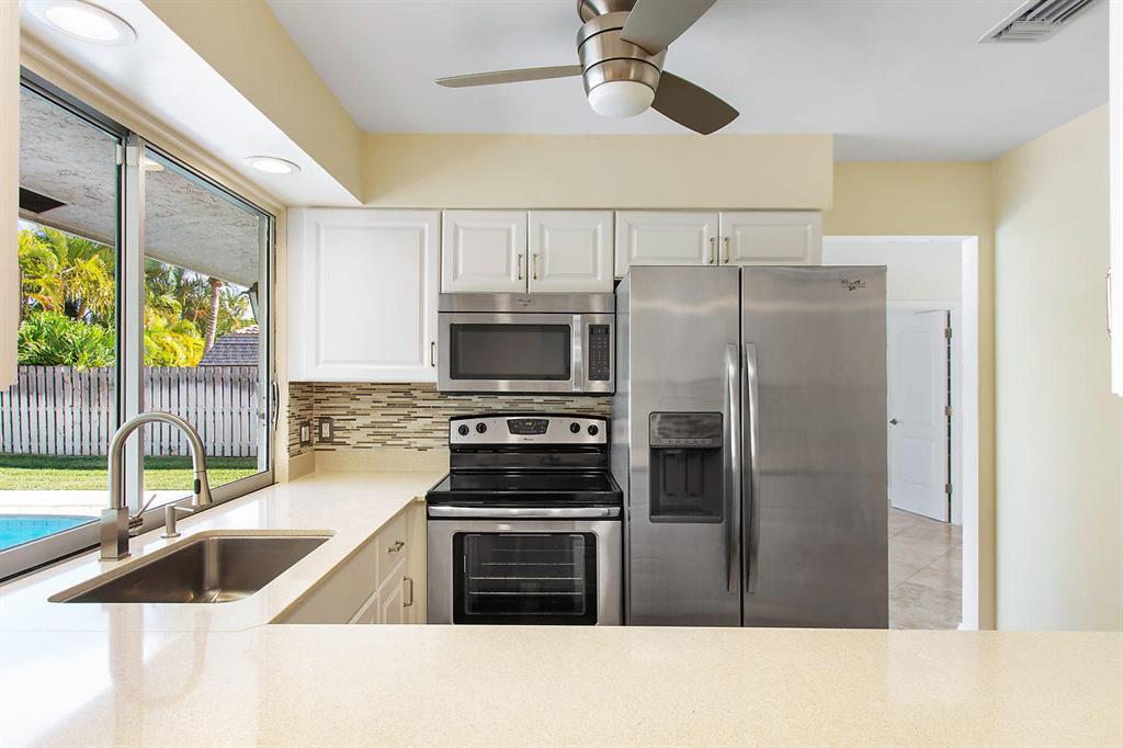 Welcome Home! Recently remodeled Boca Square home featuring beautiful marble floors throughout, updated kitchen with quartz and stainless steel appliances, and updated bathrooms. Tons of glass letting in natural light and overlooking the large backyard and private pool. Lush landscaping in the front and back completes it all. Extra bonuses include new roof in 2014, new pool pump and filter, all new attic insulation, and more. Schedule your private showings today!