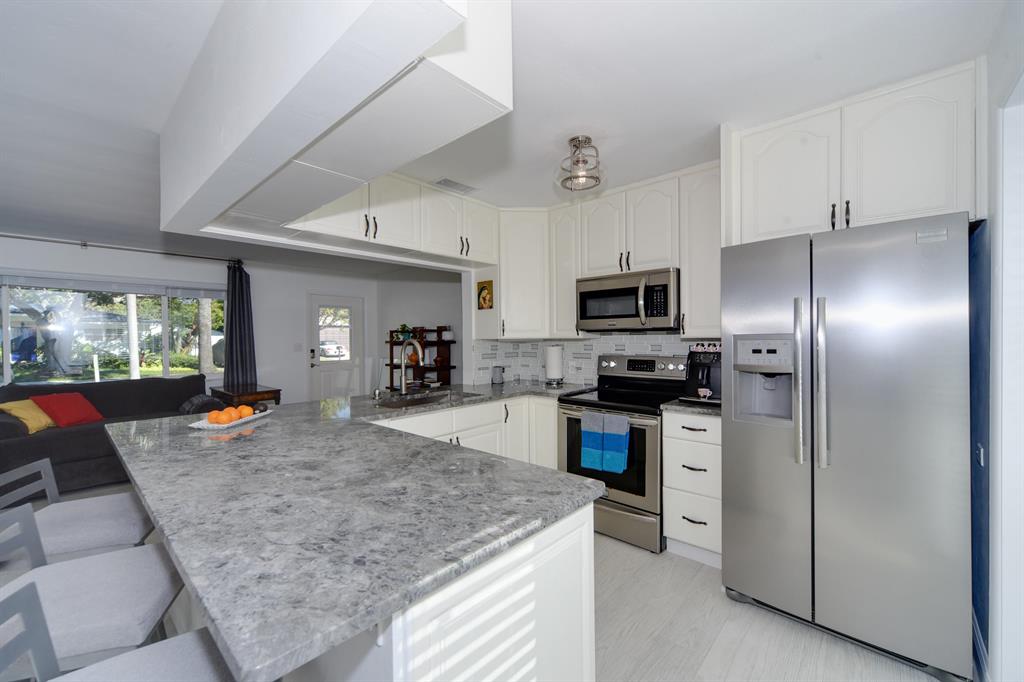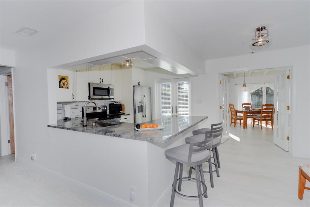 *SOUTHEND CHARMER* Priced to sell! The 4th home in from Flagler Drive, this gorgeous SoSo home has been tastefully renovated & meticulously maintained. Renovation includes an open kitchen w/ breakfast bar, white wood-look tile flooring throughout, fabulous bathroom w/ deep tub, large windows & French-doors galore! This house is light, bright, & cozy all at once! Other features include a backyard patio great for entertaining, wood privacy fence w/ double gate on one side (bring your boat!), accordion hurricane shutters & impact garage door! (dramatically reduced insurance), Honeywell AC thermostat, new dishwasher, etc. 2014-2016: AC, water heater, insulated windows/doors, driveway, & sprinkler system Note: there are architectural plans available for converting garage to master-suite.