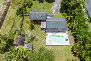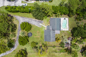 Great opportunity to own a pool home on 1.25 acres! Almost 3,000 square feet of living space! Perfect for entertaining with a HUGE living/great room. French doors line the wall, opening to your outdoor living space, consisting of a large patio, pool, hot tub, and lush yard. Beautiful wood floors throughout the inside. Granite counter tops and stainless steel appliances in the kitchen. 2 bedrooms downstairs, and the ENTIRE second floor is a master retreat which includes a sitting area, master bathroom, and tons of storage space. With this GREAT LOCATION you are tucked back to enjoy total privacy while having direct access to main roads which puts you only a short drive to the conveniences of the Royal Palm Beach, Wellington, and West Palm Beach areas. Truly a gem, don't miss this one!
