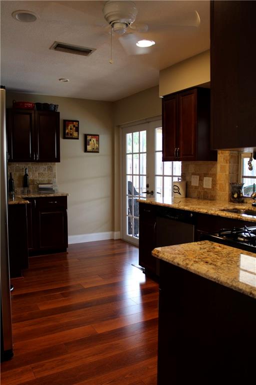The BEST house in the neighborhood! This remodeled 3/2 pool home 1 car garage will not disappoint. Beautiful dark wood floors throughout, carpet in the bedrooms. Kitchen has been completely remodeled with granite counter tops, tumbled marble backsplash, a nd beautiful cabinets. Both bathrooms have been remodeled also. Custom landscaping, 2014 Pool Diamond Brite, A/C less than 5 years, roof is 10 years. NO HOA!!! See broker remarks for EMAIL and showing instructions.