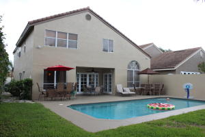 Perfect 4 bdr plus loft home at the end of the cul-de-sac in very desirable Palladium community at Boca Pointe. Updated pool home with lake views, the best lot in this small subdivision of 35 homes. Light and bright with south exposure. Tile floors throughout the downstairs. House exterior just recently painted. Roof 2 years old. AC 3 years old. Master upstairs with gorgeous master bath. Loft gives you added space for an office. 2 car garage with extra long driveway for extra cars or wonderful play area for kids. Laundry inside. High, textured ceilings. Part of the Boca Pointe community so dues include roaming security. Walking distance to shops and restaurants. Great schools. A great find in the Boca Del Mar area!