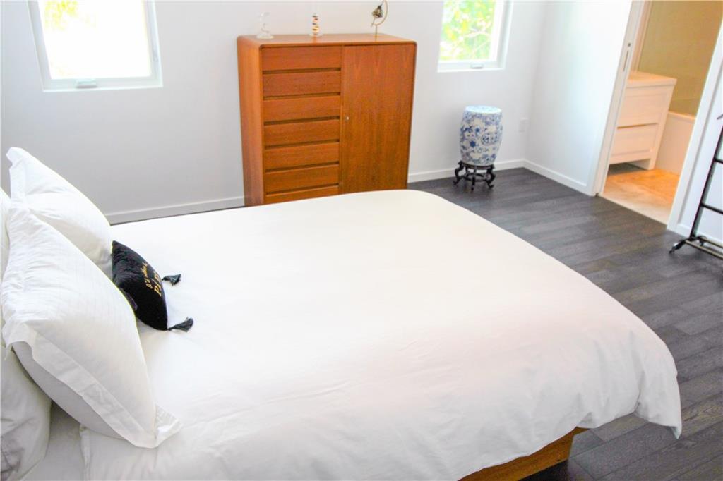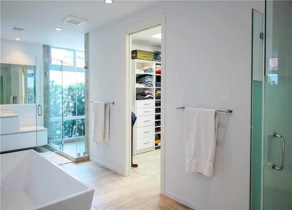 Stunning contemporary residence with exceptional finishes & a tranquil waterfall entry feature. First floor master suite with a serene view of the salt water pool & private yard. Kitchen features natural gas Bosch cook top, Thermador refrigerator, an oversized island for dining & entertaining featuring Quartz countertops. An abundance of natural light with Porcelain floors accent a striking floating staircase. Second level features 3 ensuite bedrooms & grand loft & oak floors. Home generator.