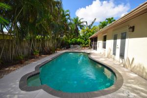Centrally located 3BR/2BA home in great school district, near shopping, dining, and close to 95. Home has open floor plan, and gorgeous gourmet kitchen. Large kitchen center island overlooks both family and living rooms. Great for entertaining and a nice flow throughout. French doors off master, living and family rooms lead to beautiful screened patio and pool on one side, and lush landscaping with meditation garden off family room. Vaulted ceilings w/ high hat lighting and plantation shutters throughout. Home is a must see! It won't last long!!