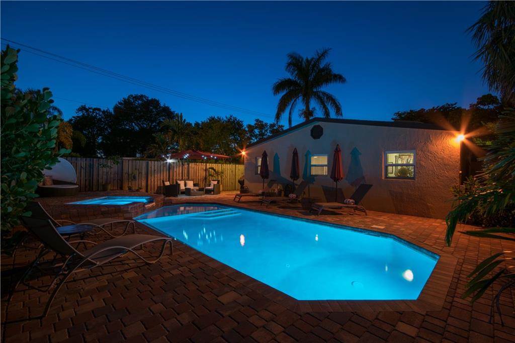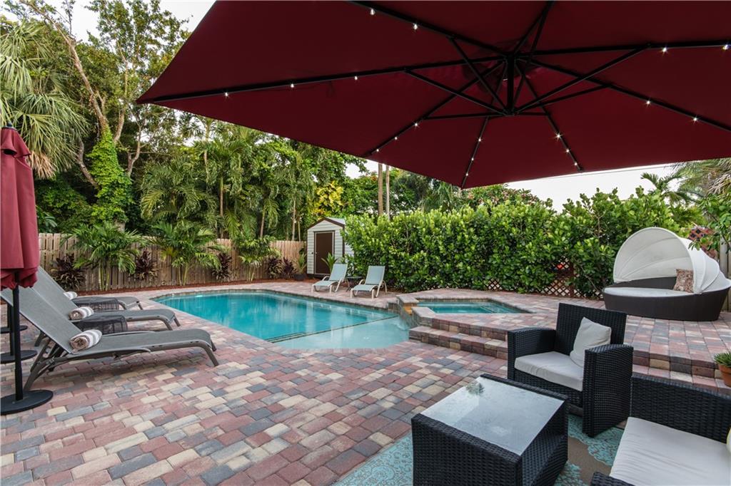 Recently rebuilt from the ground up! Gorgeous contemporary, magazine quality home! Must see to appreciate!Oversized corner lot on alley w/custom 2nd driveway w/private rear entrance gate. New low maintenance tropical landscaping w/all new irrigation. Gas Heated salt water pool & spa w/splash pad. Resort like environment. Ample storage & large hurricane rated shed. Open plan featuring huge kitchen, gas stove, quartz countertops & enormous master suite w/gigantic custom closet. Turn key entertainers dream!!