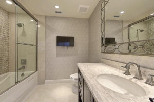 Tudor lakefront estate in sought after Whispering Woods, a gated community. Completely renovated and totally rebuilt by South Shore Homes. 5 Bedrooms, Plus Den, 4 full baths, 1/2 bath. New electrical, new plumbing, new drywall, all hurricane impact windows and doors. 1000 Gallon gas tank that services the pool, spa, water heater, dryer, summer kitchen, Barbecue and New tankless water heaters. All new appliances, new bathrooms, new kitchen, new window treatments and fixtures, a must see..