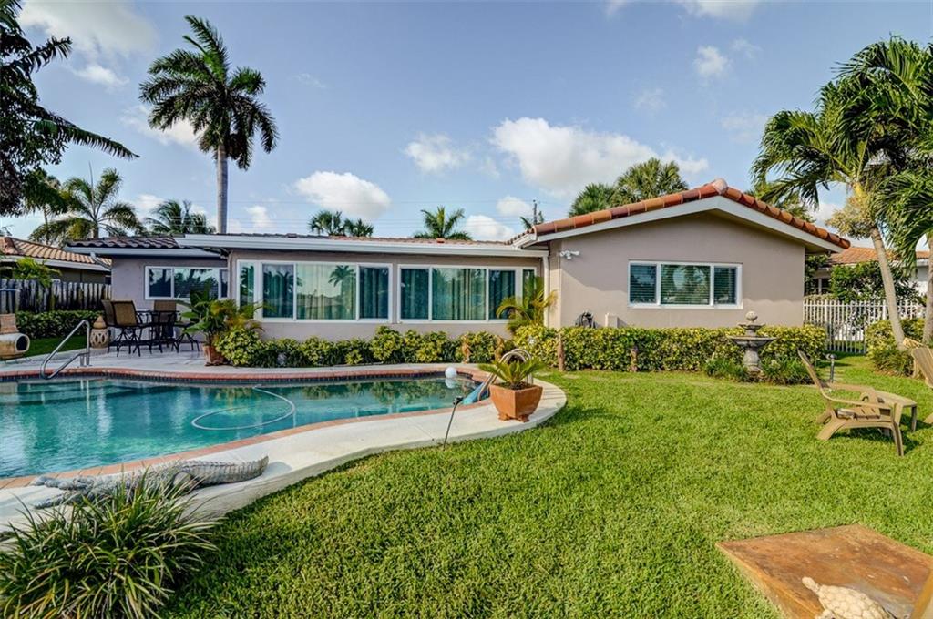 Relax by the pool & enjoy a beautiful relaxing waterfront view located on the South Fork of Middle River. The water is ocean access so bring your boat (or even better, your friend's boat!) This is a true three bedroom, two bath home with bonus room currently being used as a home office. Newly installed impact windows, renovated baths make this a home that just needs you! Homes on the water in this neighborhood rarely come up for sale!6 camera secur system, Stand-by generator, Garage A/c unit.