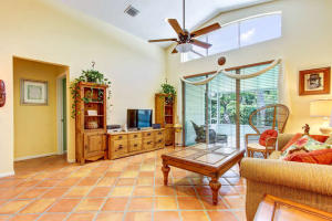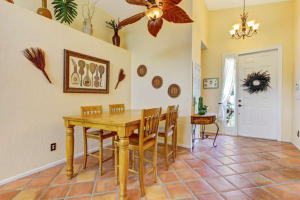 Bright and airy home in Dillman Farms lovingly cared for by original owner. Situated in the back of the community for quiet and little traffic. Tile floors throughout main living area and owner's suite; laminate floors in 2nd & 3rd bedrooms, porcelain tile and extra phone and cable outlets in garage. Maple cabinets, accordion shutters, whirpool Roman tub, Trane AC (2009). Enjoy the outdoors and catch the sunset in the oversized covered screened patio overlooking the private fenced yard which contains several varieties of palm trees and a banana tree. Very low HOA includes gated entry, community pool, cable TV, and security system monitoring. Dillman Farms is centrally located with shopping nearby and is within walking distance to the elementary school.