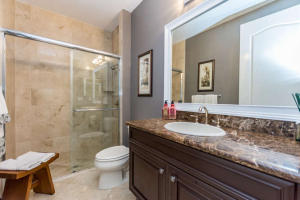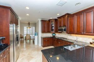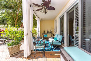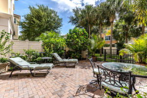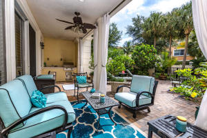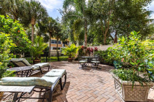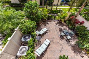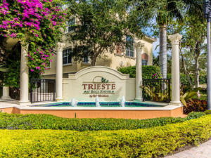 Stunning unit with marble and Travertine flooring through out. Crown molding, beautifully landscaped with summer kitchen. Custom outdoor lighting, all upgrades available. Immaculate unit, stainless steel appliances, interior unit with perfect location in the community. Close to Mizner, Beaches, and shopping. Close to 95. Convenient to all desire and needs. Park like setting, with manned gate. Plantation shutters, built ins, and custom closets in master bedroom. Tons of storage. Beautiful home for the most articulate buyer. One quarter HOA contribution required upon sale.