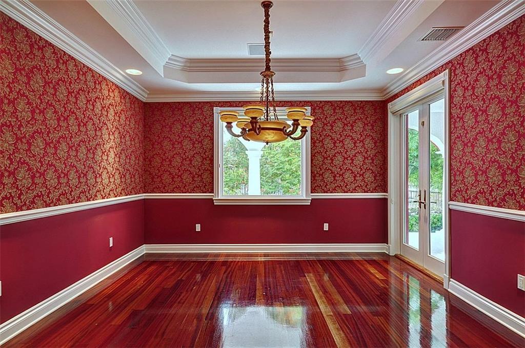 Exceptional gated waterfront estate, exquisitely detailed w/unparalleled quality. This estate boasts slightly over 8,000 total sq. ft & offers a lg floor plan ideal for entertaining and casual living. The culinary kitchen opens to the family rm & custom wet bar all overlooking the pool/spa & patio area. The lavish master suite is a show place with a private sitting rm & 2 oversized walk-in closets. 7 br, 7 fba, 3 cg & fully equipped guest qtrs. Sq ft from builder's plans believed accurate but not verified