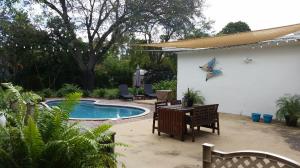 Plantation Gardens gem situated on a 13,750 SF lot. There is ample room for boat/RV parking on this lot. Travel down tree lined Orchid drive to this home with an amazing free form pool with built in ledges/table seating area, surrounded by an expansive fenced garden. This home is remodeled and kitchen features granite and stainless steel appliances. Huge Florida room with a wood burning fire place surrounded by stone. NEW ROOF 2015, New hot water heater.