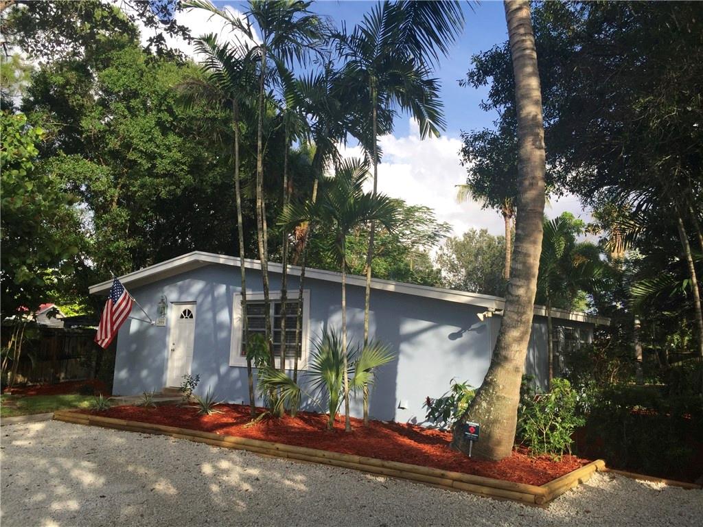 Beautiful Tropical Home. 12,000 sqft Lot w/Fenced Yard. Professionally Landscaped w/ Mature Fruit & Palm Trees. Large Private Driveway w/space for Boat or RV. Boat Landing close by. Open Floor Plan with Wood Beam Vaulted Ceilings. Remodeled Kitchen w/Granite Counter Tops & Extended Breakfast Bar. Enclosed Florida Room, possible 3rd Bedroom or Den. Storage Shed & 2 Patios. New Roof only 2 Yrs old. Don't miss out on this Tropical Paradise in a Prime Location! Close to Beaches, shopping and minutes to I-95.
