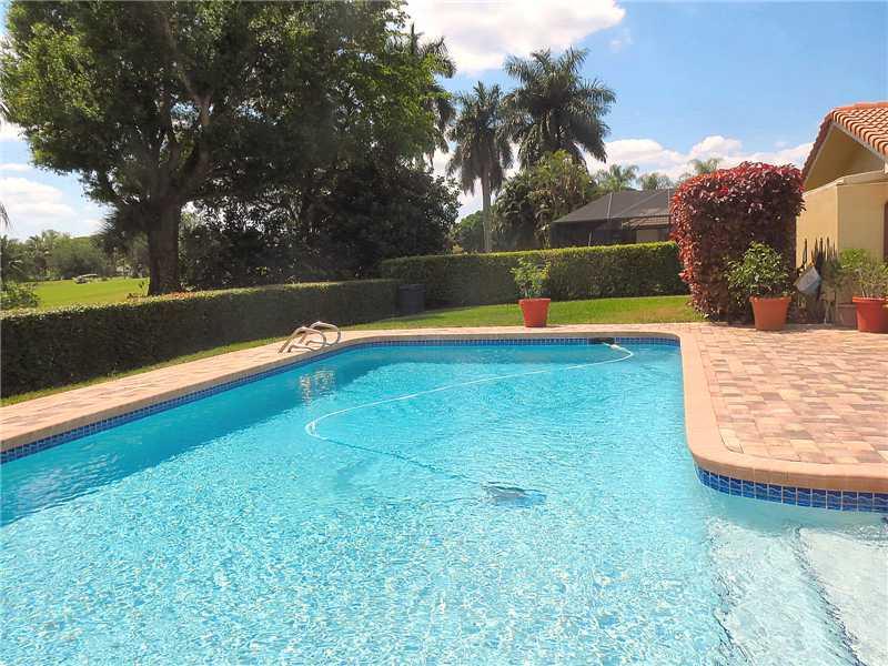 MAGNIFICENT GOLF VIEW AS SOON AS YOU COME THROUGH DOUBLE DOOR FOYER ENTRY.FORMAL DINING ROOM, GREAT ROOM WITH WOOD LAMINATE FLOORING,TRIPLE GLASS DOORS LEAD TO PAVERED PATIO. TONS OF KITCHEN CABINETS,DOUBLE OVENS,DINING AREA ,WITH GREAT VIEW! MASTER BEDRO OM FEATURES TWO LARGE WALK IN CLOSETS, HIS & HER SEPARATE SINK AREAS, CREMA MARBLE SPACIOUS SHOWER WITH GLASS OVERLOOKING WALLED PRIVACY GARDEN.SECOND BATHROOM HAS JACUZZI TUB, DOUBLE SINKS.OVERSIZE PATIO & POOL WITH GARDEN AREA.INSIDE LAUNDRY AREA.