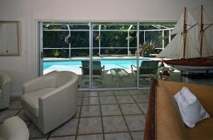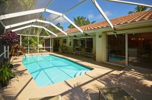 One story custom estate home located on a lushly landscaped oversize lot with room to build a garage. The original garage was converted to a second master with separate air conditioning, plantation shutters, new contemporary bathroom and private entrance. Upgrades include, new roof, new pool/ patio enclosure, hurricane accordion shutters, walking paths, anti mosquito misters. A tropical paradise! Exclusions include all chandeliers.