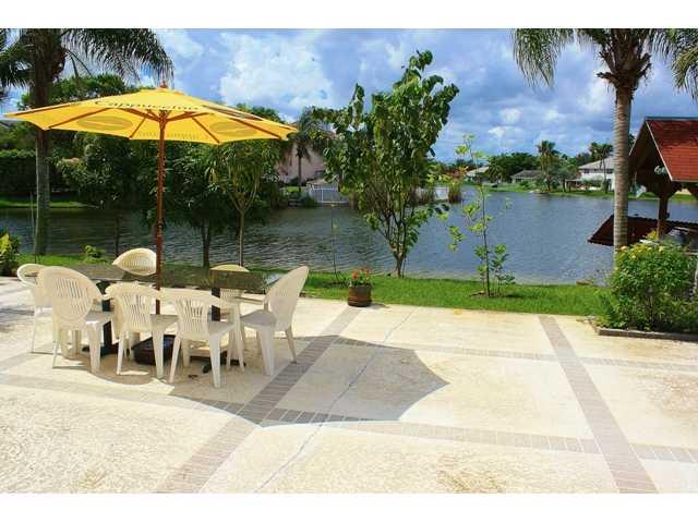 SPECIAL HOME FOR ENTERTAINING . SPACIOUS PATIO OVERLOOKING BEAUTIFUL DEEP AND WIDE LAKE VIEW. GAZEBO WAS DONE WITH ALL PERMITS . HOME INCLUDES UPDATED KITCHEN WITH GRANITE AND SS KITCHEN AID APPLIANCES. RECESSED LIGHTING,TILE FLOORS DOWNSTAIRS AND BA MBOO FLOORING UPSTAIRS.KNOCKDOWN CEILINGS AND WALLS.UPDTED BATHROOMS.ACCORDION HURRICANE SHUTTERS.TWO A/C UNITS.WATER SOFTENER.PLEASE NOTE: BREAKFAST ROOM CHANDELIER IS EXCLUDED AND INTERCOME SYSTEM IS NOT GOING TO BE REPAIRED NOR REPLACED BY SELLER.