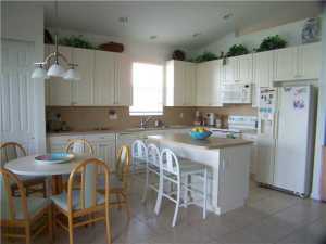 Enjoy beautiful sunsets from your screened patio overlooking the water! This well maintained home has an open floor plan, vaulted ceilings, an eat-in-kitchen with a cook island, family room, living room, dining room, screened entry, gutters and more. Laminte flooring in master. Walk in shower in guest bath.Chandelier in dining room does not convey but may be purchashed. Furniture is available separately.