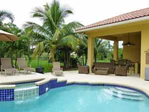 4 bedroom, Den/Office, 3 bath home on a full acre overlooking PGA golf course. Home has been fully remodeled from top to bottom. Features include a newer roof, covered Summer Kitchen, large circular driveway, swimming pool surrounded by lots of new upgraded landscaping. Interior includes marble floors, wood in bedrooms, updated bathrooms w/granite and new vanities, crown molding throughout entire home, updated kitchen, inside and outside surround sound system, 2 new A/C systems, new pool pump and much more.