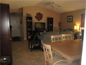 BEAUTIFUL HOME IN GREAT CONDITION, NEW ROOF 2009, HURRICANE SHUTTERS, 2BR/2BATH WITH DEN/PLAYROOM, OPEN LIVING/DINING ROOM W/ VAULTED CEILINGS, UPGRADED KITCHEN CABINETS,S/STEEL APPLIANCES,GRANITE COUNTERTOPS, MASTER BEDROOM W/ WALK-IN CLOSET TILE TRHOUGHOUT, PADDLE FANS, UPGRADED LIGHTING, PLANTATION SHUTTERS, DRAPES, BLINDS, WAINSCOTING - NICE DESIGNER TOUCHES.......PLENTY OF LIGHT, SLIDING GLASS DOORS IN LIVING/DINING ROOM, KITCHEN & MASTER BEDROOM TO FENCED BACKYARD WITH WRAPAROUND BRICK PATIO. 2 CAR DRIVEWAY AND GUEST PARKING. COMMUNITY HAS POOL,CLUBHOUSE AND PLAYGROUND, ALL VERY NICELY MAINTAINED.