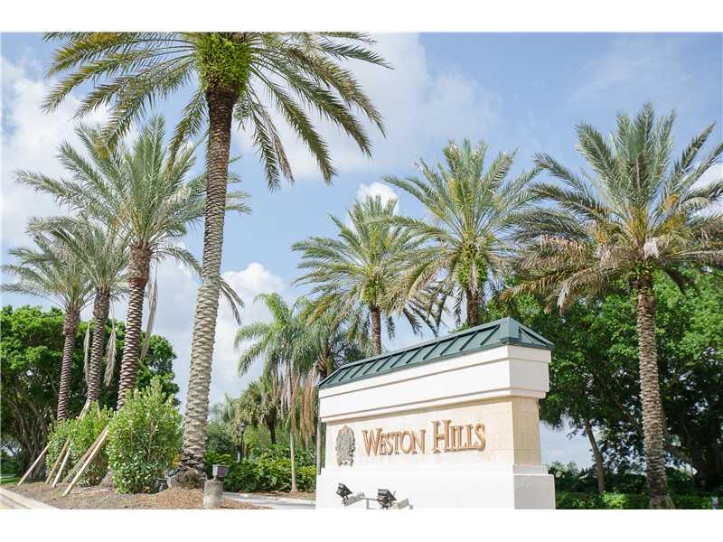Spacious Weston Hills six bedroom, five full and one half bath home featuring triple split plan with separate in-law quarters and maids room. Master bedroom has a separate sitting area, wood floors, and his/her walk-in closets. Formal living and dining ro oms, eat-in kitchen overlooking family room with views of the 9th hole, crown molding throughout as well as Hunter-Douglas window treatments. Gated community and A-Rated schools.