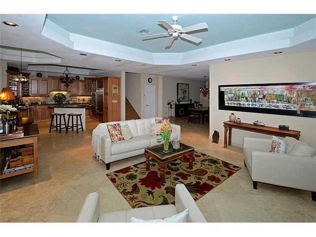 *STYLISH-CHIC RIO VISTA HOME* Total renovations include a great chef's island kitchen w/the finest granite, top of the line appls. BKfast area adjoins kitchen. Generous sized family Rm w/volume trey ceiling leads to a private sanctuary lushly landscaped w /a covered patio, a uniquely shaped pool w/spouting water sconces. 1st floor offers 3 bdrms, well designed bathrooms, fireplace, travertine & oak floors. 2nd FL beautiful large master suite has Cherry hardwood floors, high ceilings & a tree top balcony.