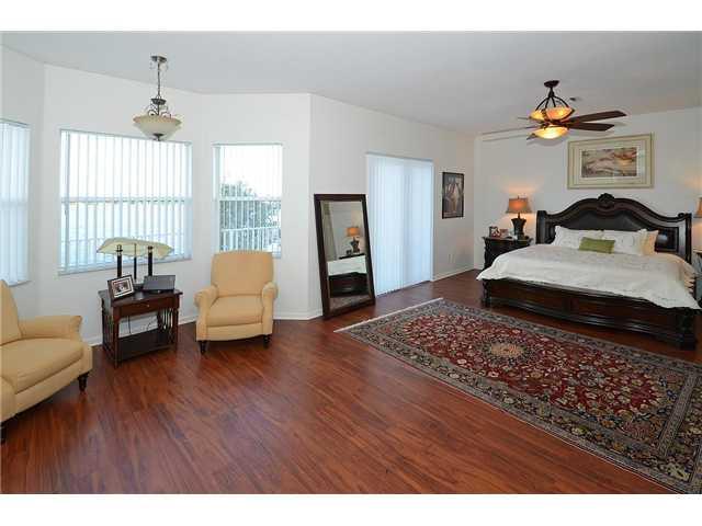 Huge 5/3 w/3 car garage. The largest lot in Riviera Isles w/no neighbors front or back. Enjoy mile wide lake views from almost every room. Model perfect w/new dark hardwood floors upstairs & tile floors downstairs. Upgraded kitchen features granite,stainl ess appliances,wood cabs,large pantry & convection oven. Don't miss the volume ceilings,French doors,intercom,oversized Master walk-in & large Master balcony.Long driveway fits up to 6 cars. A 5 star gated community w/ pool,tennis,tot lot,gym,+ lots more!