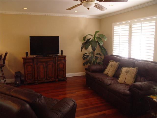 Beautifully updated Coral Ridge Isles 2BR/2BA offers open concept living with rich Cherry wood floors, a custom-design kitchen with breakfast bar, granite counter tops and stainless appliances. A spacious Family room has custom built-ins with crown moldin g and recessed lighting throughout. French doors from Master, Dining and Family room open to an L-shaped covered terrace overlooking a sparkling pool and private, park-like yard. Formal gardens and circular drive lead to a welcoming front porch entry.