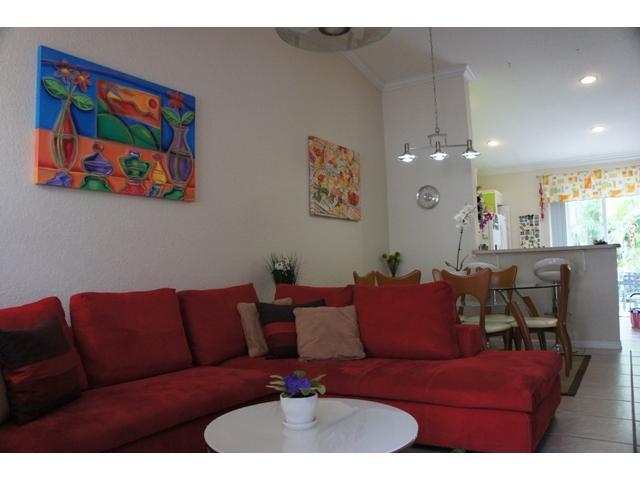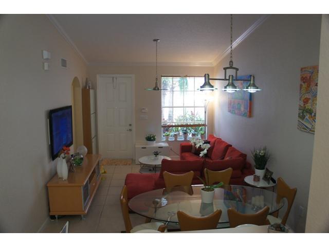 Beautiful 3bed 2bath 1car gar townhome in gated comm, subdiv with loaded amenities, tropical landscape welcomes you into living dinning rm combo, spacious kitchen looks onto outside dinning and patio area, hallway with desk area not visible to living ar ea, both guest bdrms with ample closet space, hallway bathrm with beautiful stone tile, master suite with lots of natural light and closet space, master bath with dual sinks and spa tub/shower combo, Premium cable and alarm incl in HOA. Kids club incl.