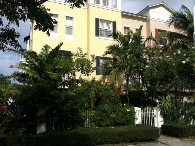 Beautiful corner unit at The Ellington, Gated front garden area, lower level has flex room & private bath, Main floors offers wood floors, impact windows throughout, high ceilings, view of the City, kitchen offers, granite counter tops, SS appliances, gas stove, microwave, dark wood cabinets, 1/2 bath on main floor. Bedroom level offer 2 master suites W/ private bathrooms, W/D located on this floor & has an added feature to this beautiful TH is the roof top terrace w/ covered Lanai & 2 zoned a/c,