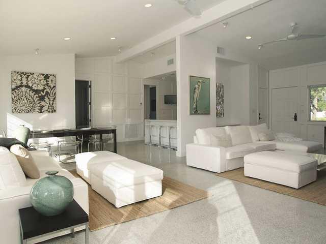 Classic mid century deepwater bungalow in gate-house guarded Riviera Isles. Well presented and move in ready! New roof, remodeled contemporary kitchen and updated bathrooms,vaulted ceilings in open living areas, fireplace, custom wall paneling abundant wi ndows create very light interiors. Super split bedroom floorplan. Beautiful pool area with great views over Rio Coral water way. Enjoy great proximity to inlet for boaters and easy beach access. Exceptionally nice waterfront offering!