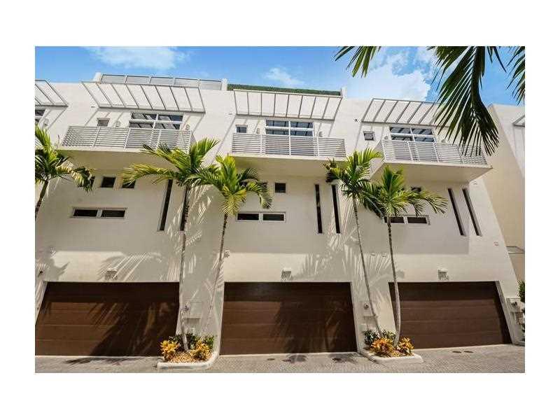Only steps to the beach this dramatic four story 3BR/3.5BA Miami Modern design boasts floor to ceiling windows, elevator, a floor-thru staircase, premium fixtures and fine Euro-contemporary cabinetry. Features include: Australian Cypress flooring, a heate d roof-top pool and terrace, private balconies from both Master and guest suites, a ground floor bedroom with bath plus. There is a both walled and gated street side public entry and a private gated motor court entry with garage access. Enviable location!