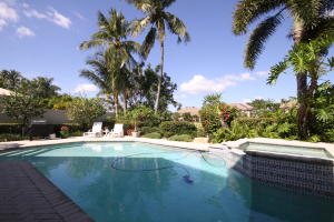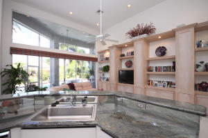 Very bright lake front single story home with high volume ceilings with a private orchid filled atrium. This 3 bedroom and 2 and a half bath home features an open floor plan with the kitchen open to the family room and breakfast area. The kitchen view with ''pool and lake'' invites the out doors in and expresses a tropical look that is truly South Florida. The roof is newer as is the HAVC. Come live the Broken Sound lifestyle. The best private club community in Boca Raton.