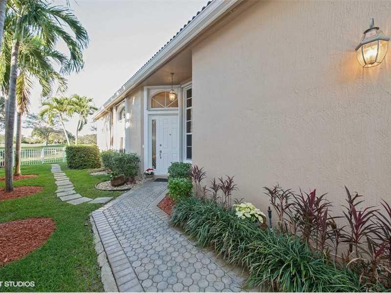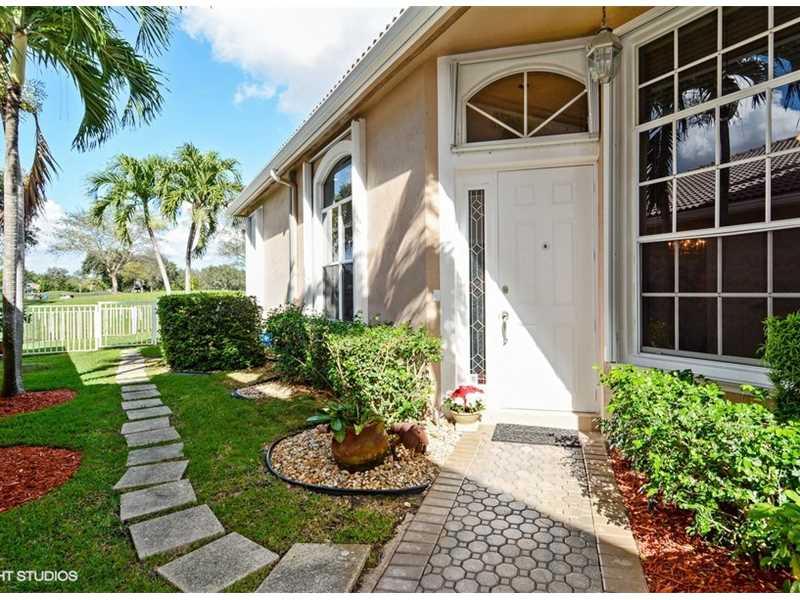 Let's just say its a honey for the money! Rolling greens & water features of meticulous golf course are your views from almost everywhere in the home. No requirement to join private golf club. Large patio-pool, fenced yard. Updated kitchen & custom remode led bathrooms. Accordion hurricane shutters, crown moldings; move in ready & quick occupancy avail. for this picture perfect 3 BR with separate den/office, easy to convert to 4th BR. Tennis incl. in HOA. Path behind home is service path, not for golfers