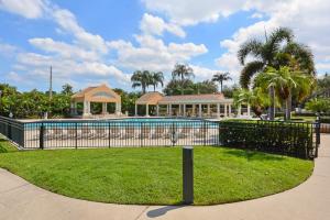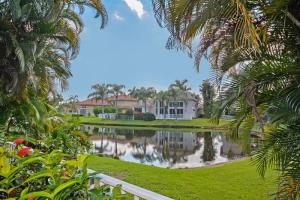 Beautiful one story lakefront home on cul-de-sac in one of the finest communities is Boca...low maintenance with all the facilities. This 4 bedroom plus office/library has been freshly painted and features a split bedroom plan. Discover high ceilings..the open floor plan...so perfect for family enjoyment. This home features spacious kitchen with breakfast bar opens to light and cheerful family room, informal breakfast area flowing outside to tropical gardens, waterfall and private pool and patio. Master bedroom has seating area,tray ceiling, crown mounding and glass expanse opening to relaxing tropical setting.