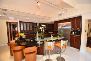 Completely renovated (down to studs) 1 story (no steps) home has luxury high-end finishes. Impact glass, whole-house generator, modern architectural details, new plumbing & electric, Crestron (audio, visual & lighting), charcoal-filtered water, custom window treatments, limestone floors, Venetian plaster & more. Huge living room, formal dining room sculptured ceiling. Gourmet kitchen with top-of-the-line appliances including Viking gas stove, Miele dishwasher & espresso maker within the Miele refrigerator/freezer. Adjacent Butler's Pantry with 2nd dishwasher (crystal & china), wine cooler, sink, 2nd oven & large cabinet space. Kitchen opens to large family room with gas fireplace, remote sun block shades & view of backyard tropical paradise. Summer kitchen has infrared gas grill, fridge,