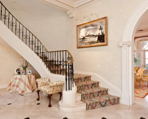 This unique Mediterranean villa of exquisite architecture has 4 bedrooms, 5 full baths and 2 half baths in the main house, a dock, ocean beach access by easement and a separate garage apartment with a large living room and an additional 2 bedrooms and 2 full baths, plus a half bath in the garage itself. The main house features breathtaking water views from all major rooms. A very special property!