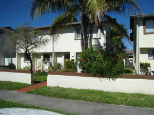 Townhome in pristine condition, with large, fenced private yard. Great for grilling or outside entertaining. Each owner owns the land. The 2 very large dual Master bedrooms which can be accommodate larger furnishings. living and dinning room has lovely built in and mirrored wall, cool A/C, hurricane accordion shutters throughout. Lots of closet space. Easy Access to I-95 and Turnpike. Great shopping 1 minute away Great location, quiet neighborhood, Save every month because this is HOA has NO fee. Covered screened patio.