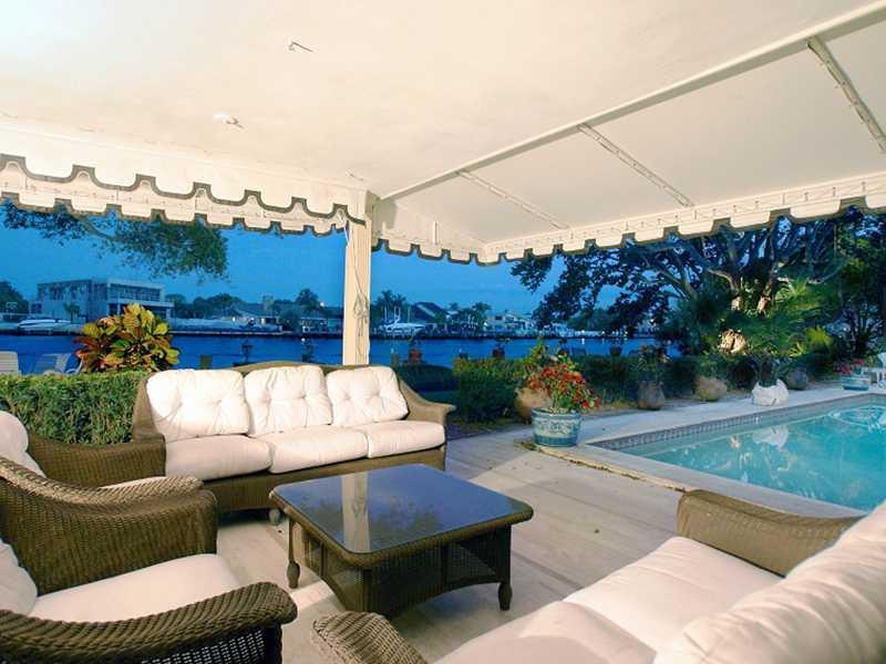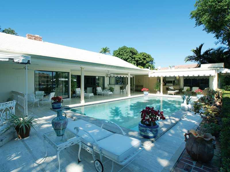 Direct Intracoastal home with 100 ft frontage. Herringbone-patterned parquet floors and 9±-foot ceiling with wormy chestnut beams & dentil moldings. Tile-floored kitchen has granite counters & full appliances including Bosch dishwasher & GE Profile range. Family room features a massive floor-to-ceiling wood-burning stone fireplace, beamed ceiling, oak flooring. Master bath is marble-encased with a separate tub and shower plus a double vanity. Marble pool patio & lanai with summer kitchen.