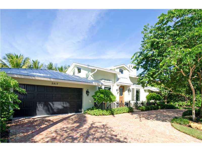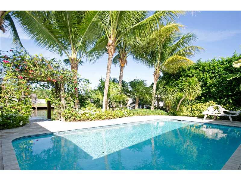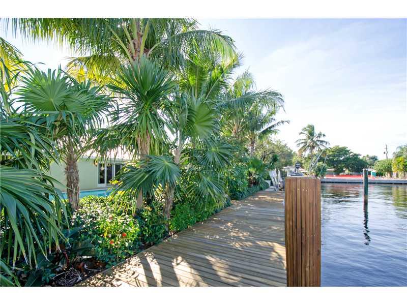 Elegant transformation from a traditional Florida ranch home to an extensive, no detail spared, West Indies style, 2009 renovation on 100 feet of water. High ceilings and sky lights in select areas provide added living dimension. 3 bedroom, 3 bathroom spl it floorplan envelops a spacious living area featuring a separate den/office and family room. Professional landscape design lends beauty and privacy. Custom built awning covered entertainment area provides an unforgettable pool and waterfront experience.
