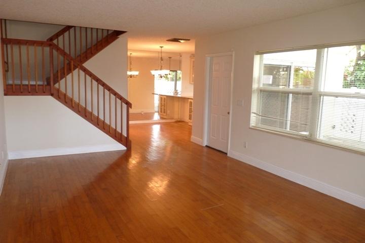 2 story townhome with fenced courtyard entry. This is the perfect starter home and located in a gated community with pool and playground. Fresh interior paint throughout. 1st floor has all wood flooring and stairs and 2nd floor have brand new carpeting. The kitchen features granite countertops and upgraded cabinetry with stainless steel appliances. This is double master bedroom model with both bedrooms having a private bathroom. Central vacuum system, newer A/C system and all windows have roll up shutters for easy storm prep. Easy showings anytime!