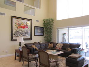Not like any other home in the Palms, this 3 bedroom, (master down) 2 1/2 bath home has been redone! ABSOLUTELY STUNNING!!! High end appliances and finishes are everywhere. Porcelain floors, 24 foot volume ceilings, custom-made kitchen cabinets with Bosch dishwasher and 36'' induction monogram cook-top are just a few of the many upgrades. The view is spectacular especially from a 9000 dollar therapeutic hot tub on a screened in porch. All the bathrooms are redone with tasteful expensive plumbing fixtures, toilets, shower, special tubs, glass tile and high end finishes. Architectural lighting, recessed lighting and EVEN a new custom made STAIRCASE was installed. This home is for the BUYER who JUST WANTS TO MOVE IN AND NOT DO ANYTHING.