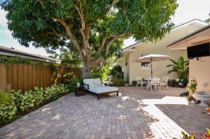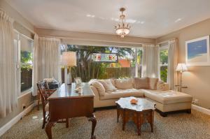 Fabulous Ranch Style home situated on large corner lot and one block to Flagler Drive & intracoastal waterway! Home has been remodeled with hi-end kitchen cabinets, appliances, wood flooring, plantation shutters & more. Breezeway separates garage and leads to a tropical paradise & gas heated Pool. Privacy abounds fenced rear yard and includes outdoor shower. Master bedroom suite adjacent to cozy sunroom!! This ''gem'' will not last!!